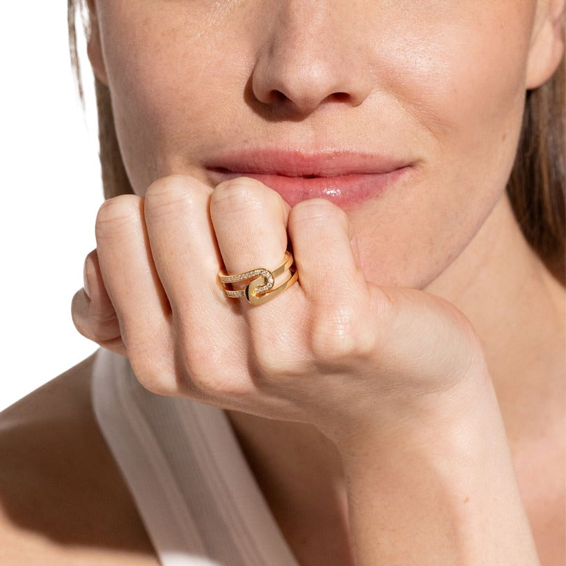 Dinh Van 18Kt Yellow Gold Maillon Star 0.23Ctw Pave Diamond Ring Small Model 55Mm / Sz 7.25