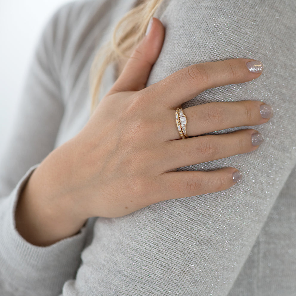 18k solid gold | Baguette cut diamonds | Round cut diamonds