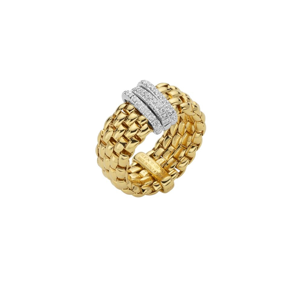 Sleek and dimensional, the Flex’it ring from FOPE’s Panorama Collection brings together signature flexibility with a bold, low-profile silhouette. Crafted in 18k gold and accented with polished rondels, it slips on with ease thanks to the patented stretchable design. A modern essential—comfortable, distinctive, and effortlessly wearable.