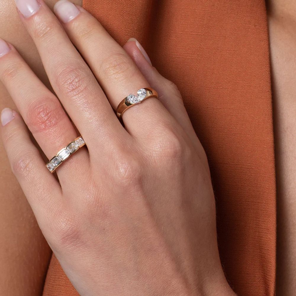 Elevate your proposal with this stunning diamond heart-shaped ring in yellow gold. The unique design features a "kissing pear" setting, symbolizing the unity of two hearts coming together as one. Perfect for those looking for an extraordinary engagement ring that stands out from the rest.
