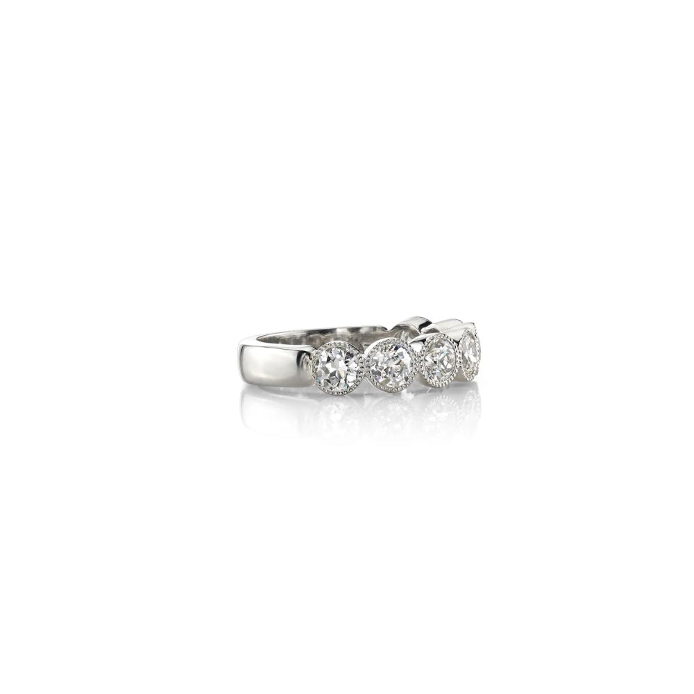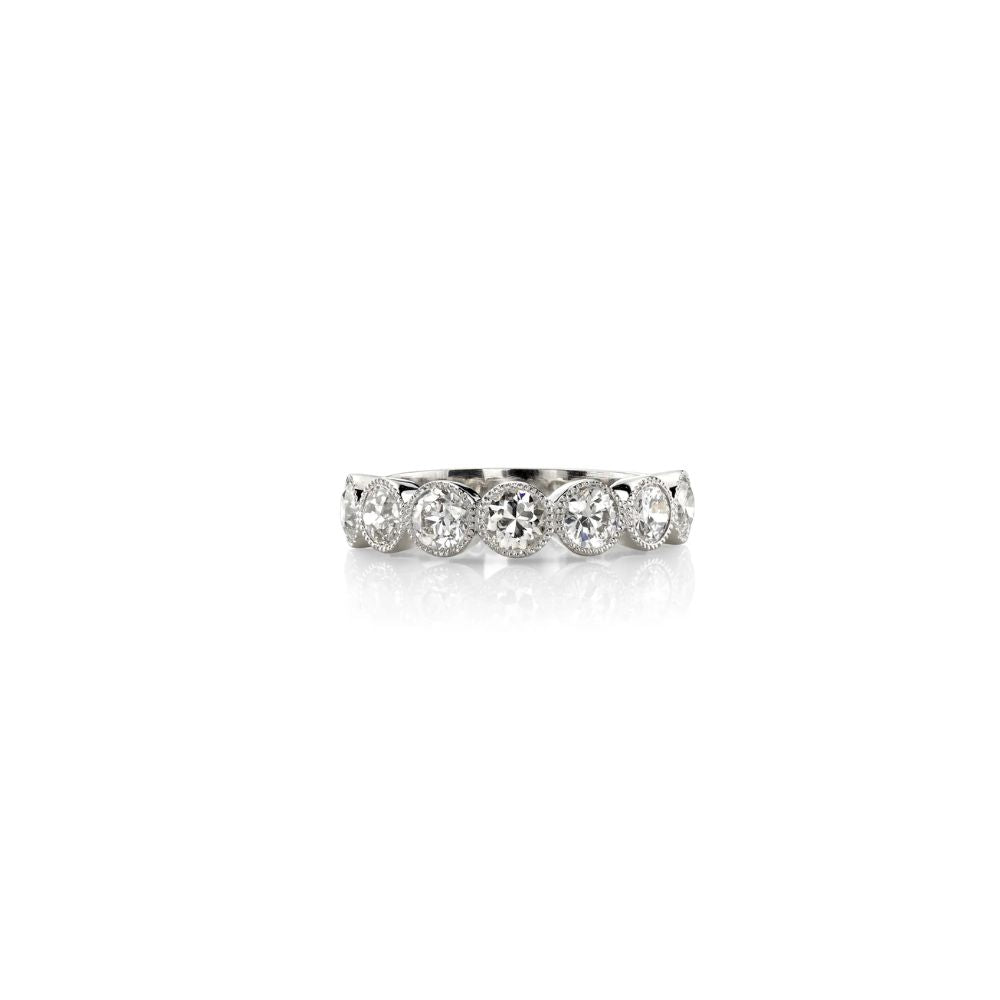 Signature shine with a streamlined feel. The Gabby Half Eternity features European cut diamonds bezel set halfway around a handcrafted 18k gold band. Understated, elegant, and easy to wear every day.