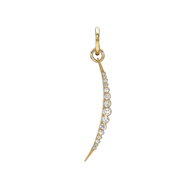 Approximately 0.30ctw old European and antique old mine cut diamonds set in a handcrafted crescent moon-shaped pendant.