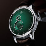 A display concept composed of three devices representing the hours, minutes & seconds located on the same plane as the dial