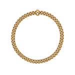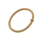 The Solo Flex'It bracelet from Fope showcases the elegant weave of medium Novecento mesh. The 18k yellow gold rondelle is adorned with a 0.01ct diamond, adding a touch of luxury to this sophisticated piece.