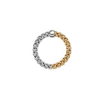 A signature FOPE design reimagined in two tones. This bicolour Flex’it ring from the Essentials Collection showcases the brand’s iconic round mesh in white and yellow gold. Crafted for everyday elegance, its flexible construction delivers a comfortable fit with unmistakable style.