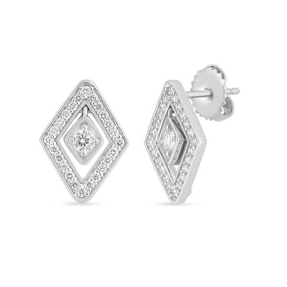 Roberto Coin 18kt White Gold Diamond Marquise Diamante Stud Earring