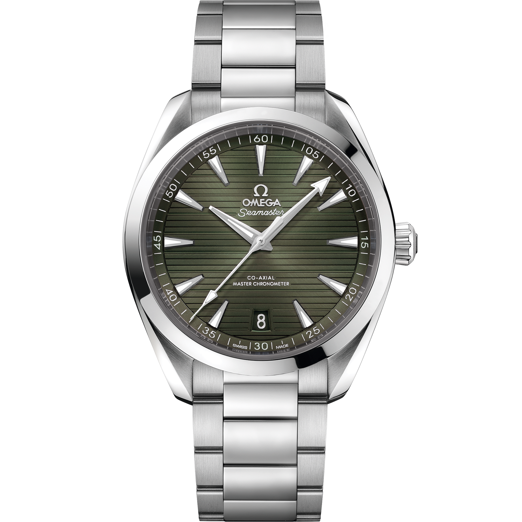 Presented on a polished and brushed bracelet, this timepiece is powered by the OMEGA Master Chronometer calibre 8900, certified at the industry’s highest standard by the Swiss Federal Institute of Metrology (METAS).