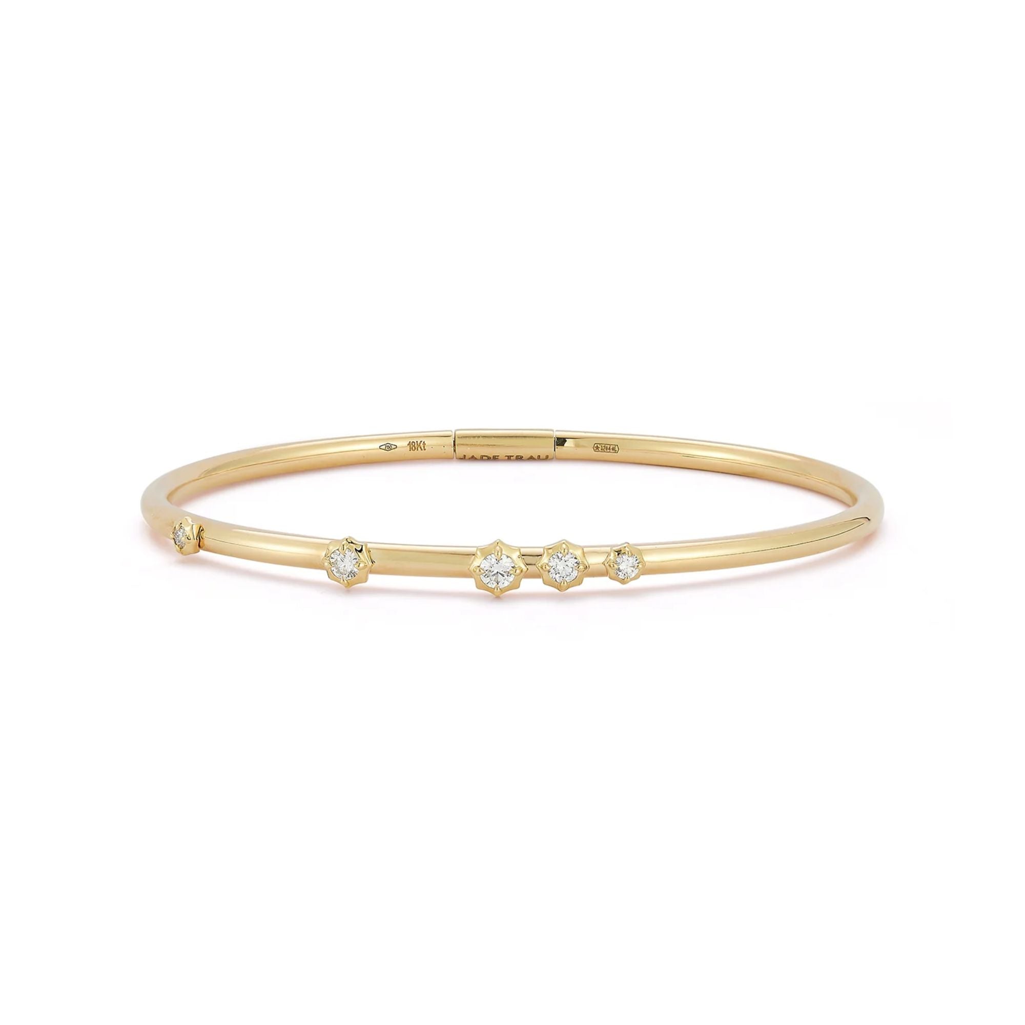 Flexible and lightweight, Jade Trau's new Plié bangles feature a malleable design that allows them to bend around the wrist, then return to their original structured position. At their core, each Plié piece is still gold and diamonds, but their easiness and approachability feel fresh, timeless and intensely sophisticated.