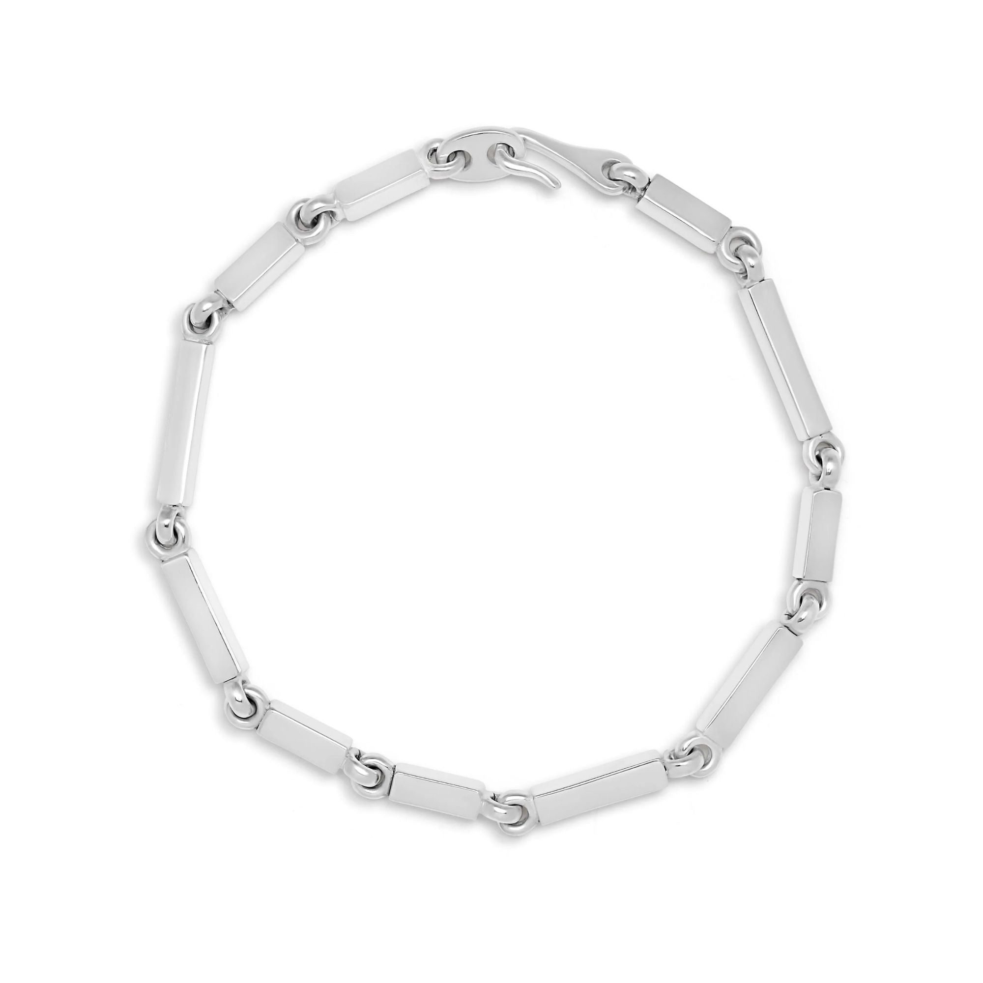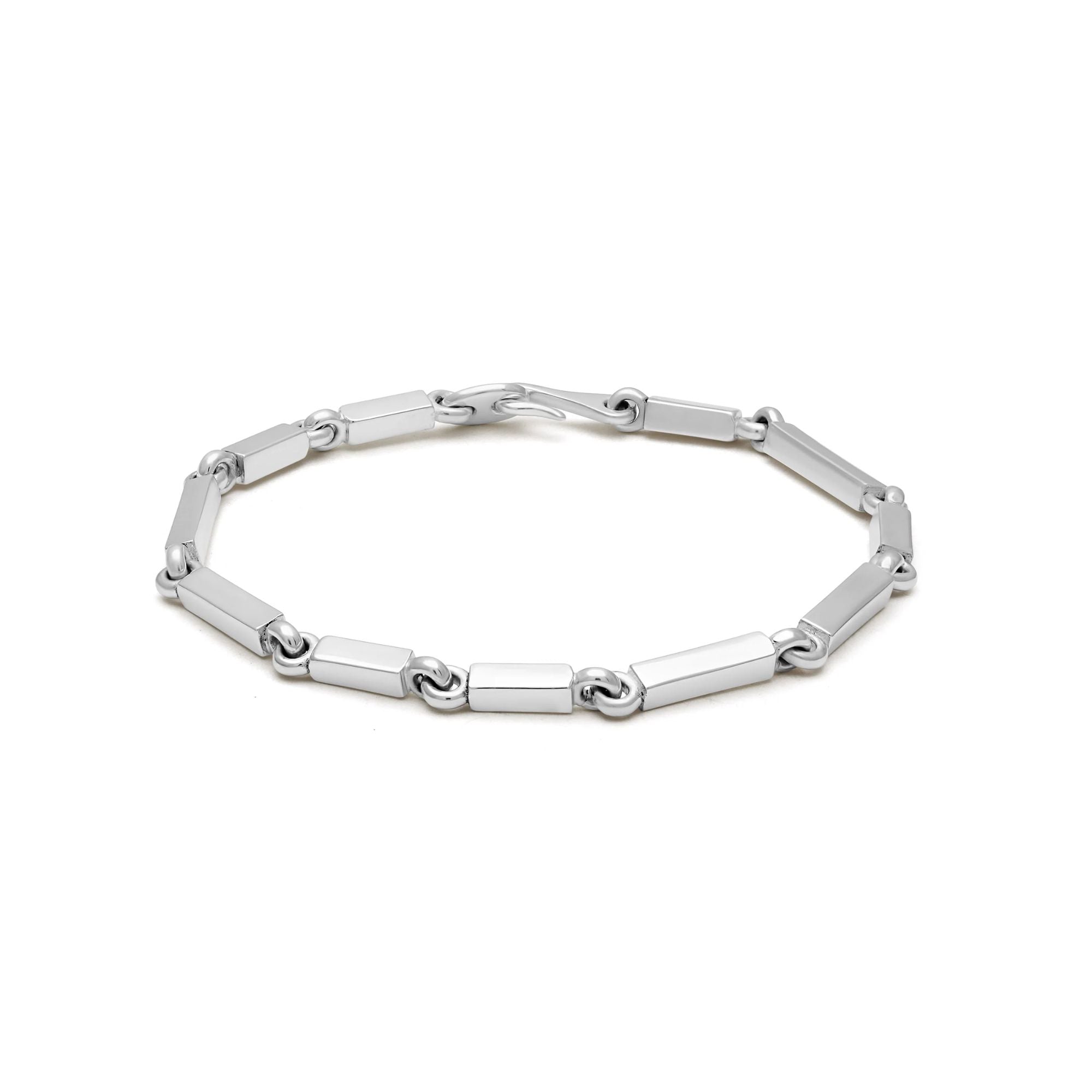 With interlocking square‑bars of varying dimensions, the Cuadrangular Bracelet interprets modern geometry through solid sterling silver. Whether worn solo or stacked with a beaded bracelet, it channels style that’s unmistakably intentional.