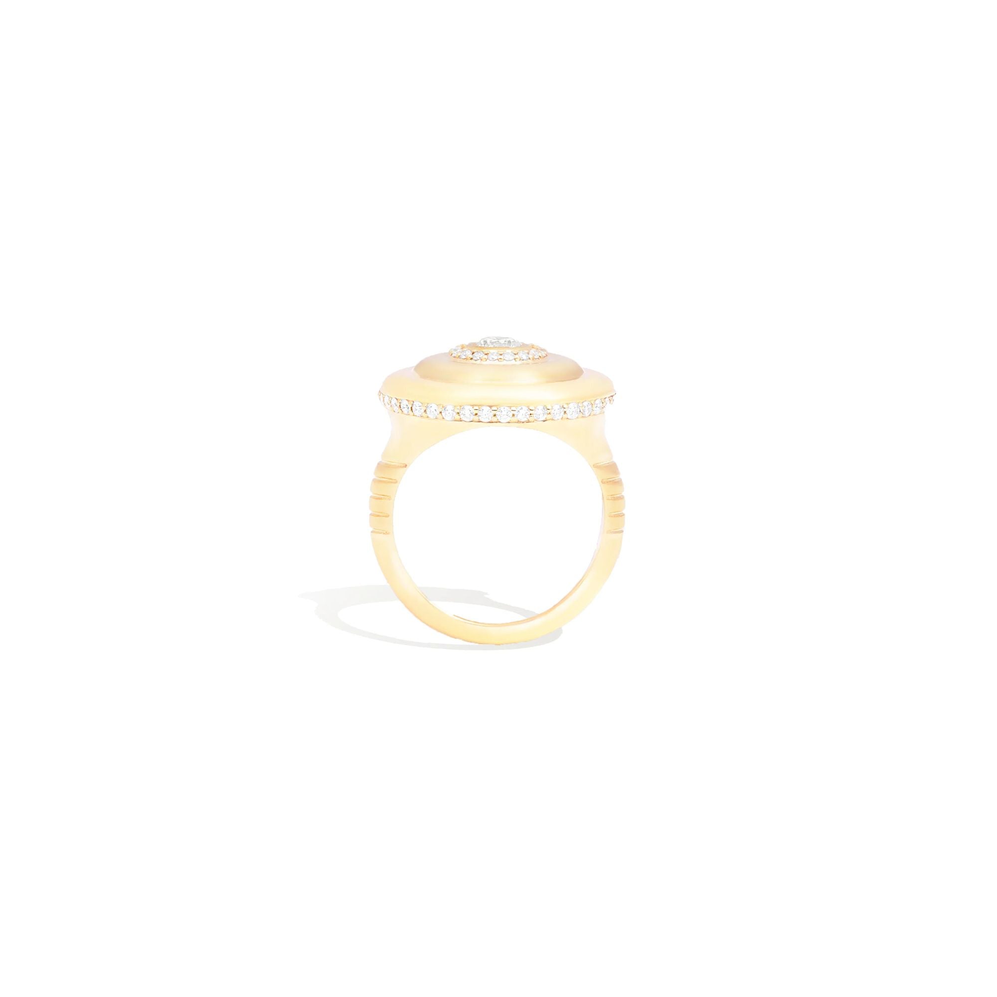 The Evolve Cocktail Ring is a striking reminder of growth and transformation. A custom-cut center diamond anchors the design, surrounded by intentionally placed accent diamonds that add depth and brilliance. The substantial silhouette is balanced by a 14k gold band with Campbell + Charlotte’s signature ribbed detailing for a clean, modern finish.