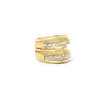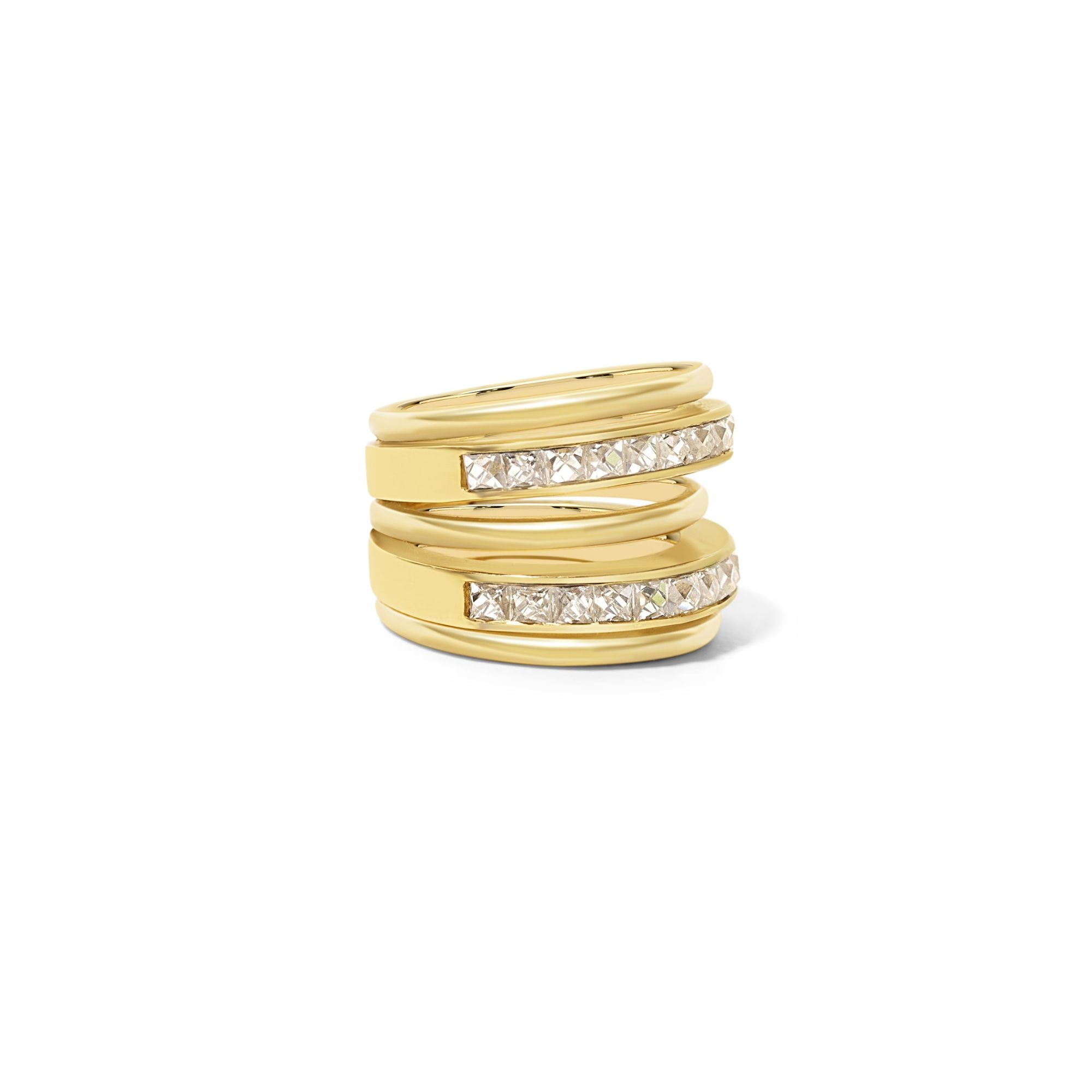 A sculptural twist on timeless diamonds. Each French-cut stone is meticulously set in 18k yellow gold, wrapping gracefully around the finger for a look that feels both structured effortless.