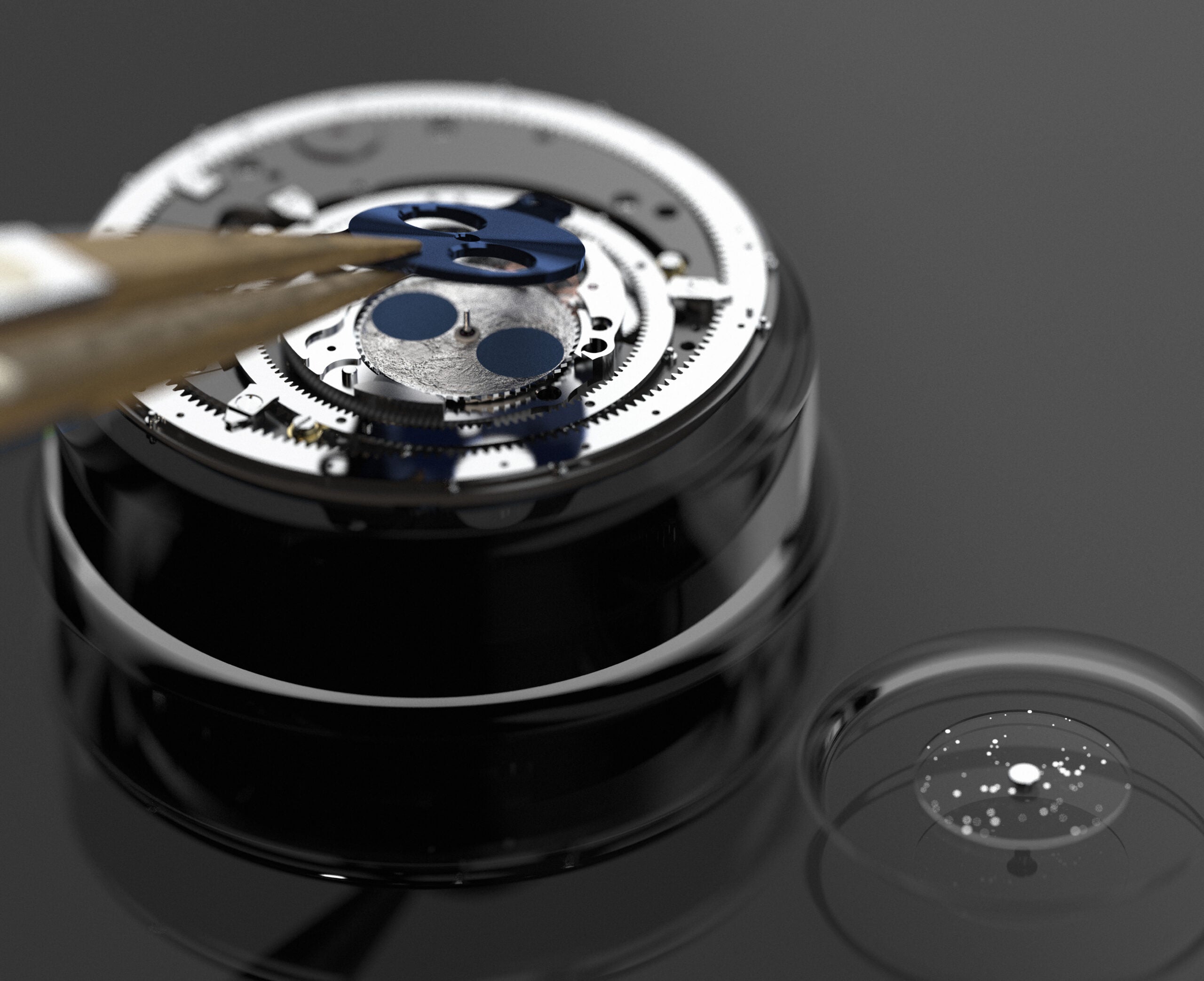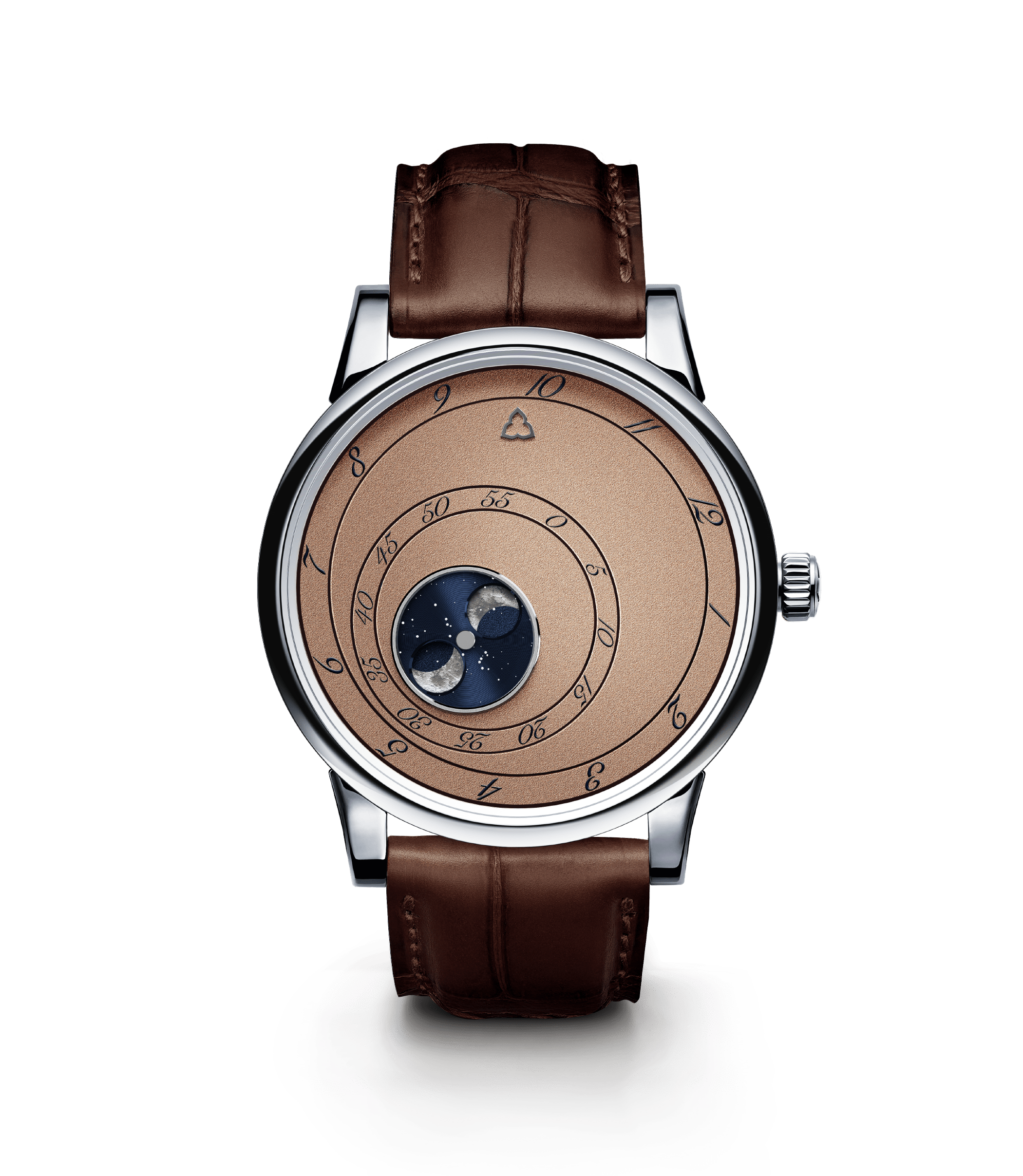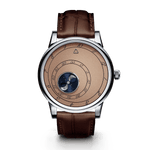 Titanium watch with automatic movement and brown alligator strap.