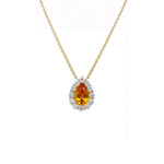 Orange Pear Shaped Sapphire & Diamond Pendant Necklace