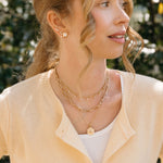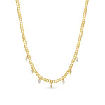 This necklace pairs a bold curb link chain with pear-shaped diamond drops, creating movement and sparkle in equal measure. Its refined silhouette make it a versatil layer, whether styled solo or with your everyday stack.