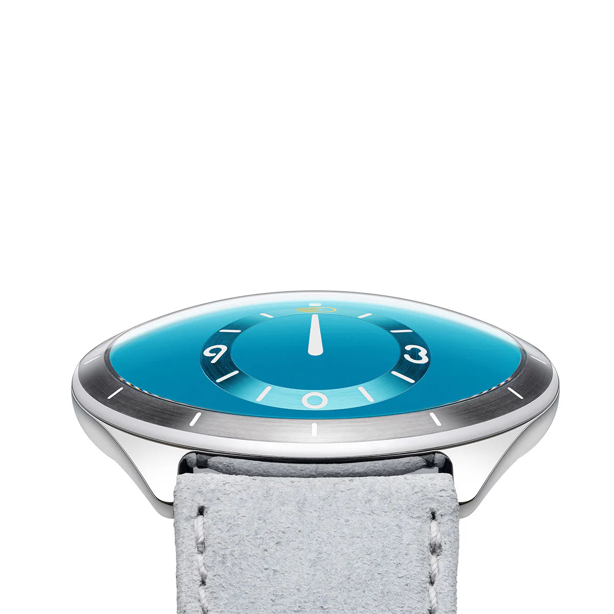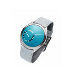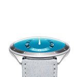 - Matt Aqua Blue grade 5 titanium convex dial (75mm radius) running on a jewel ball bearing with eccentric satellites rolling on jewel ball-bearings inclined at 9,75° (hours)
