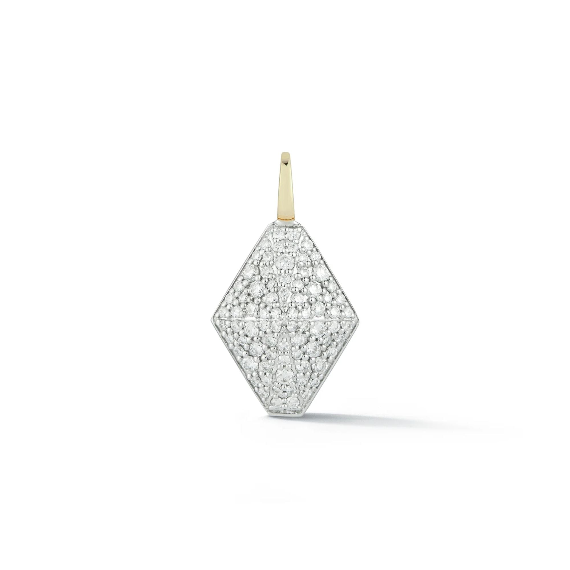 A sculptural origami-inspired charm in two-tone 18k gold, pavé-set with approximately 0.70 ct of diamonds for subtle brilliance. Its geometric silhouette and dual-metal finish make it a striking accent for any chain, perfect for everyday layering or as a standout focal piece.