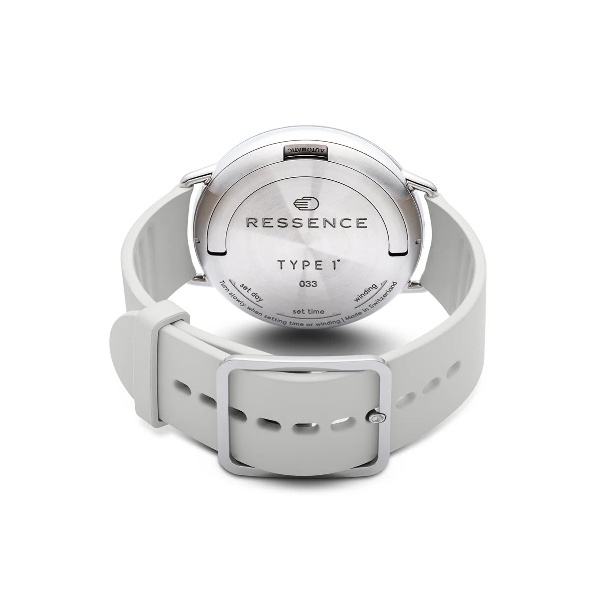 - Caseback winding and day/time setting